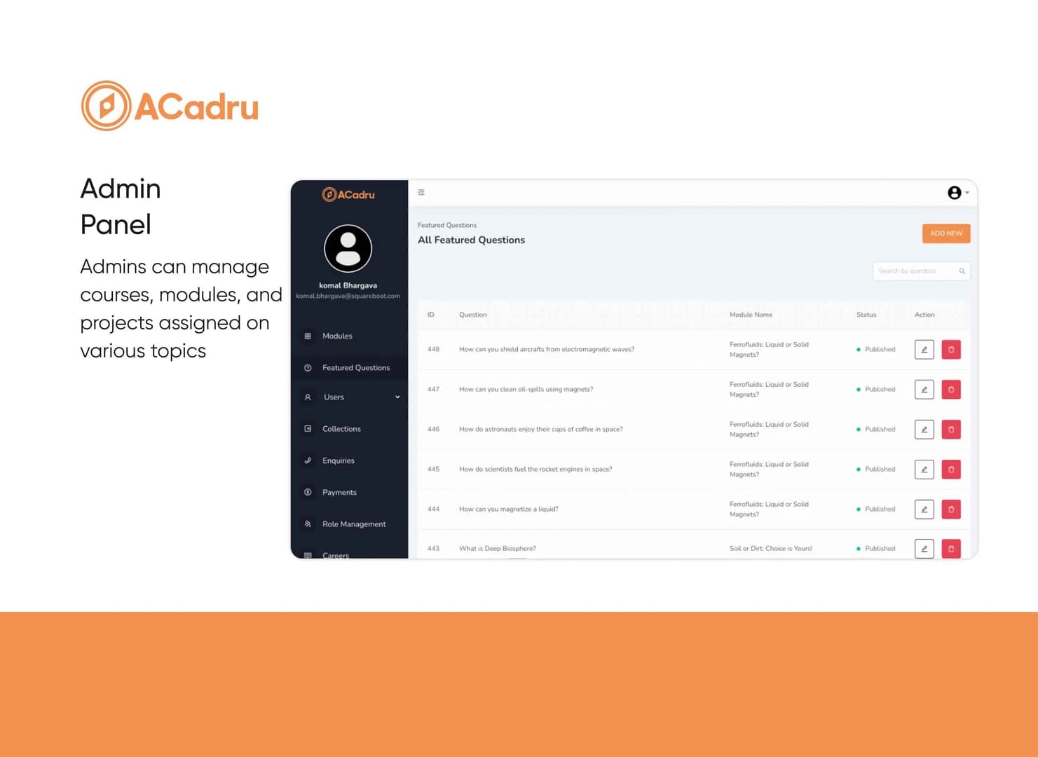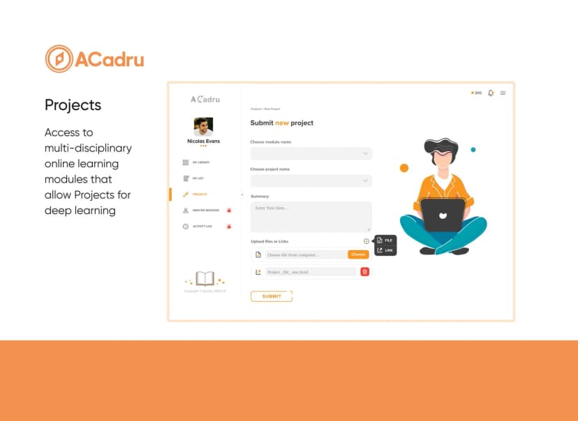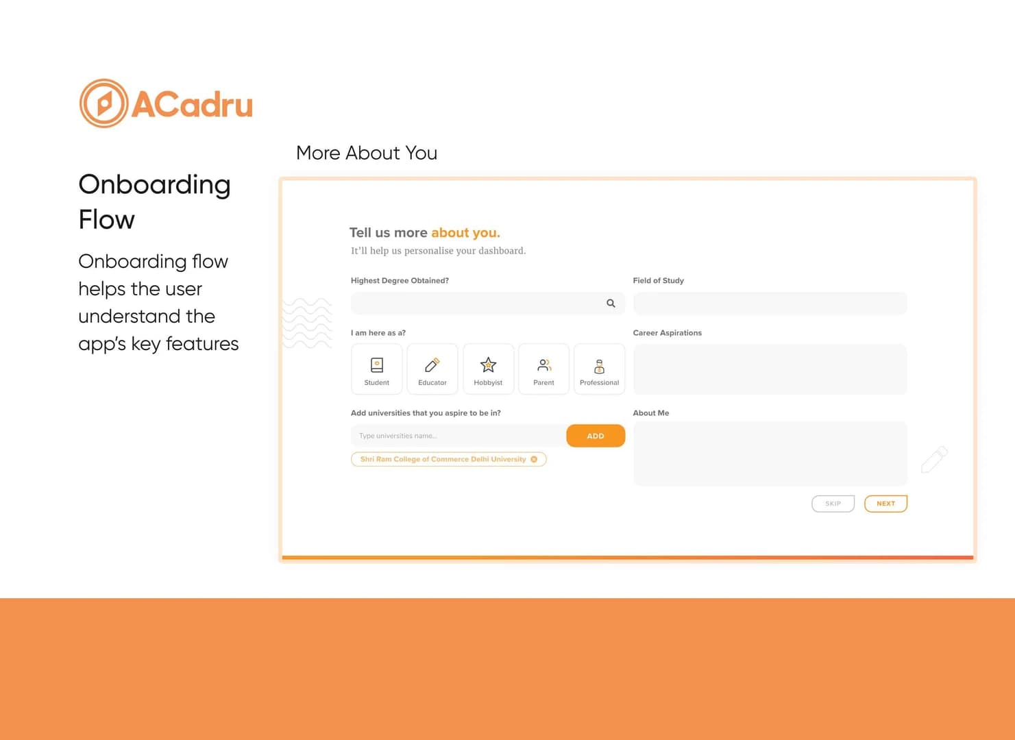 ACadru is a profile-building platform for students and professionals. The platform helps users to discover ideas, explore projects, and develop skills inline with the expectations of the future.