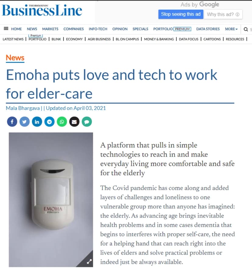 Emoha, when spelled backwards is, A HOME. It aims provides a warm and familiar environment where elders can feel cared for, even when they're far from their families from the comfort of their homes.